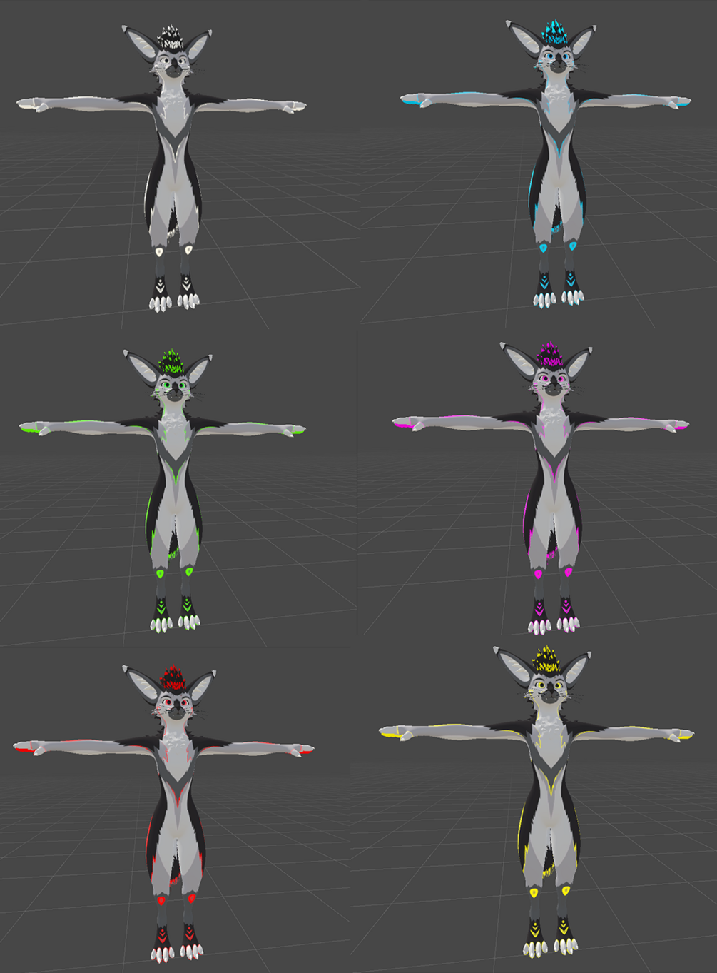 -Default colored textures as seen in pictures and videos with 6 different eye color textures